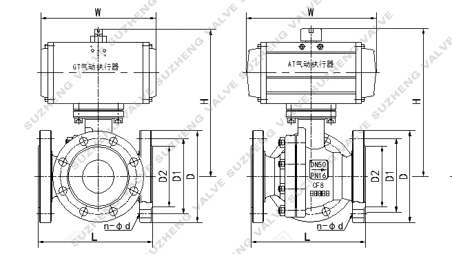 | 配置執行(háng)器型号 | GT、SR、ST、AT、AW系列(lie)單雙作用氣(qi)動執行器 | |||||||||||