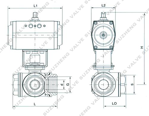 六、氣動三(san)通内螺紋球(qiú)閥外形圖