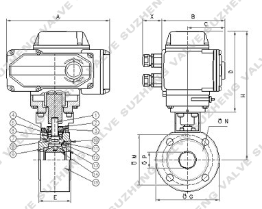 六(liu)、Q971F電動對夾球閥(fá)外形圖